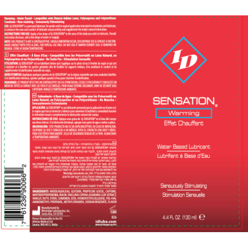 Newly formulated water-based ID Sensation is now a warming lubricant. With the same consistency as our best selling ID Glide ID Sensation creates gently warming stimulation and ignites passion in one bottle.