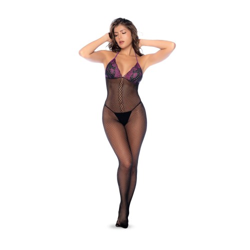Whispered Lace Fishnet Bodystocking - Os - Black/purple