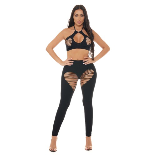 Heart Rate Halter Bra and Legging 2 Piece Set - Black - Os