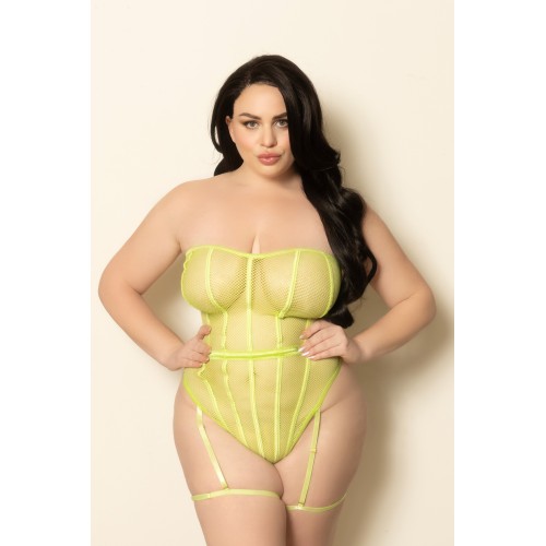 Fishnet and Strappy Elastic Teddy - Queen Size - Lime