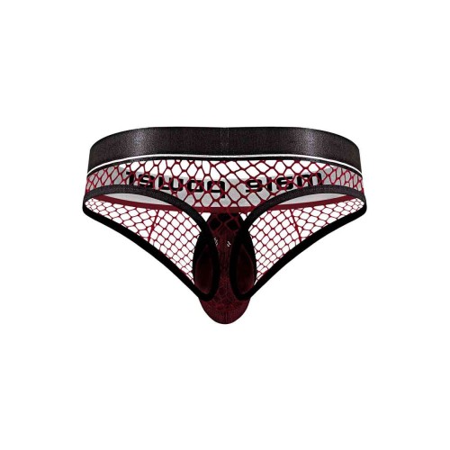 Cock Pit Net Cock Ring Thong - S/ M - Burgundy