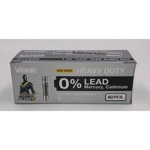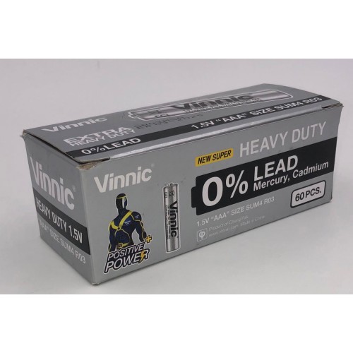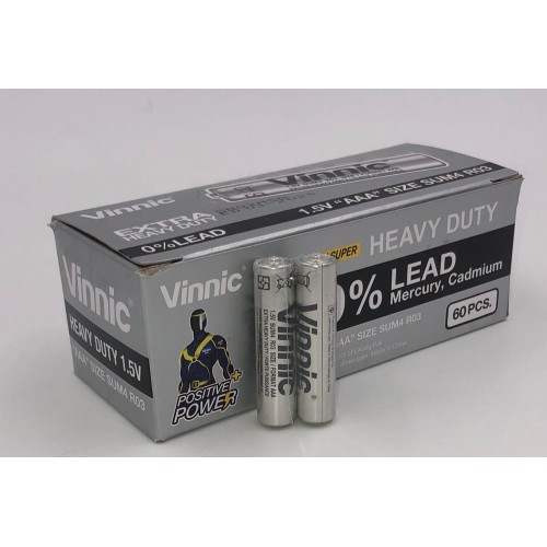 Vinnic Extra Heavy Duty AAA Batteries - 2 Pc./ Shrink Pk. - 60 Pcs. Box