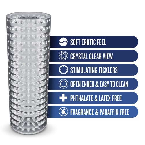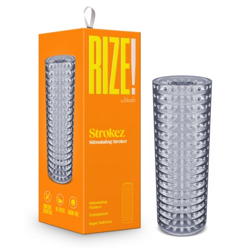 Sleek, modern, and loaded with sensation, the RIZE! Strokez sleeve features stimulating ticklers that cause waves of pleasure with each stroke. Turn it inside out and explore a smooth stroke too. Tight enough to cause pressure but soft and flexible enough for easy insertion. Use it with a water-based lubricant. Strokes is open-ended, easy to clean and contains no phthalates, paraffins, or latex.