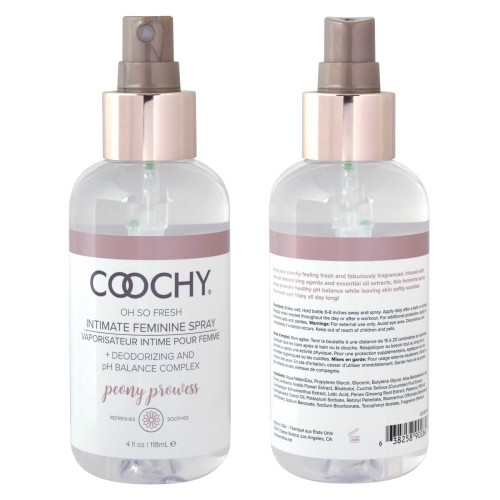 Keep your coochy feeling fresh and fabulously fragranced. Infused with natural deodorizing agents and essential oil extracts, this feminine spray helps promote healthy pH balance while leaving skin softly scented. Feel fresh and frisky all day long! Peony Fragrance.