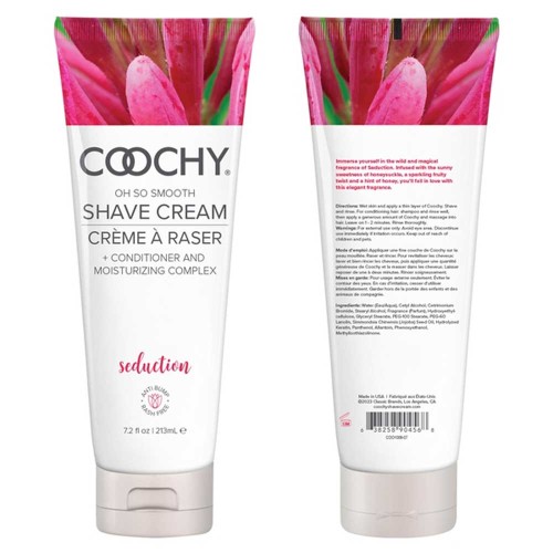 Coochy Oh So Smooth Shave Cream! Immerse yourself in the wild and magical fragrance of Seduction. Infused with the sunny sweetness of honeysuckle, a sparkling fruity twist and a hint of honey, you'll fall in love with this elegant fragrance. This signature shave cream stops red bumps from appearing on your bikini area, underarms, legs, and anywhere else you shave. Leaves skin oh so smooth and irresistible to touch!