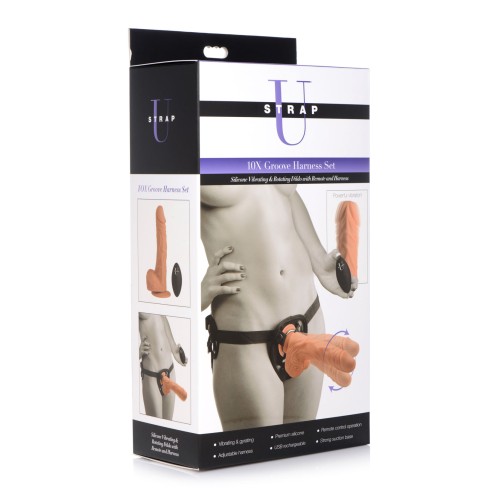 10x Groove Harness with Vibrating & Rotating Dildo - Flesh