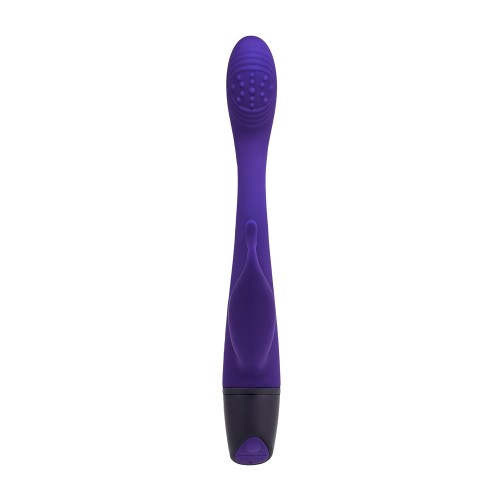 Elegantly slim and flexible, this dual motor toy curves with a gentle arc designed to effortlessly reach the G-spot. Simultaneously, a hard-working stimulator shaft buzzes with its own powerful motor, featuring a very flexible 2-pronged tickler.