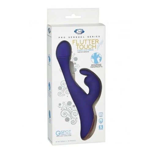 Discover the unique sensations of an intense three motor vibrator with a fluttering stimulator for G-Spot stimulation. The central shaft of this vibrator is designed with a tongue like flapping feature, created to mimic the sensations of a finger. This rabbit is ergonomically shaped to target the G-Spot and deliver strong, stimulating pulsations for ultimate pleasure. This Flutter Touch Rabbit allows for individual control of 3 unique pleasure motors: one located at the tip, one at the clitoris, and one mid-shaft fluttering tip. This vibrating massager is USB charged and includes a magnetic charging cable.
