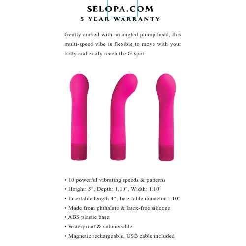 Gently curved with an angled plump head, this multi-speed vibe is flexible to move with your body and easily reach the G-spot.