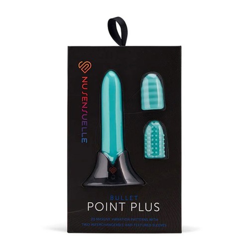 Make room in your bedside drawer because your favorite bullet just got that much better. Meet the Nu Sensuelle Point Plus Bullet with Textured Sleeves: 20 heavenly vibrations, but with 40% more power than the Point. While the Point Plus has the same silky smooth, twice-dipped silicone shell as its predecessor, this bullet vibrator offers two interchangeable, textured silicone sleeves for additional customization. Mix and match the bullets tapered tip with the removable nubbed or ridged sleeves for an out-of-body experience as a personal massager. The upgraded scrolling power controls make you time effortless, regardless of position.