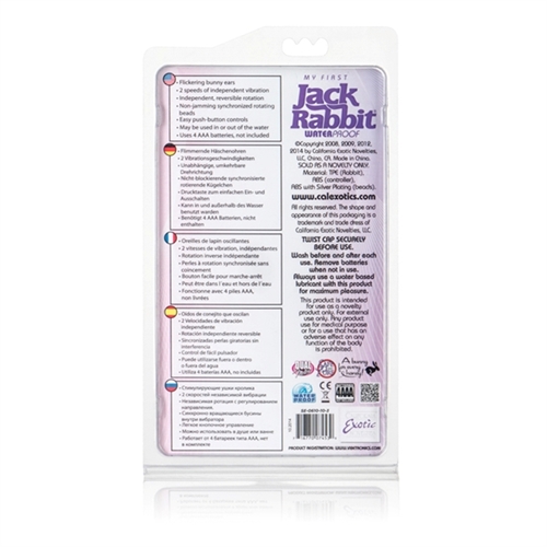 Designed with the first time user in mind. Simple easy to use Jack Rabbit. Soft supple head. Flickering bunny ears. 2 speeds of independent vibration. Independent reversible rotation. Non-jamming synchronized rotating beads. Easy push button controls. EZ load battery pack.