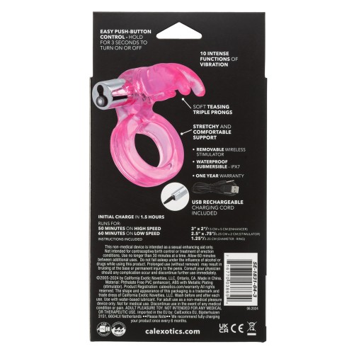Enhancement for him and triple action for her Soft Jelly triple prongs powered by a wireless stimulator, provide reverberating vibrations PVC (enhancer) ABS with silver plating (stimulator).