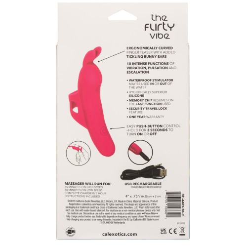 The Neon Vibes The Flirty Vibe puts knee-shaking pleasure at your very fingertips! The ergonomically curved finger vibrator is sure to thrill with pinpoint stimulation and full-coverage vibrations. The playful finger vibe indulges your every fantasy with 10 functions of vibration and tickling bunny ear teasers. The contoured finger shape and ultra-plush silicone are made to explore sensual sweet spots and pinpoint intimate desires with ease. The flickering ears and contoured body let you deliver thrilling vibrations from any angle you desire. The stretchy and comfortable finger loop allows any user to play with ease. Find your favorite setting with the touch of a button while you cycle through 10 powerful functions of vibration, pulsation and escalation. The easy-touch control button lets you enjoy frustration-free control. Get playful with up to 60 minutes of stimulation with every charge. Charge up your passion in only 1 hour by plugging the provided USB cable into the self-sealing charging port on the base of the massager. The slim massager's discreet size makes it the perfect travel companion, letting you embrace radiating pleasure wherever your fantasies take you.