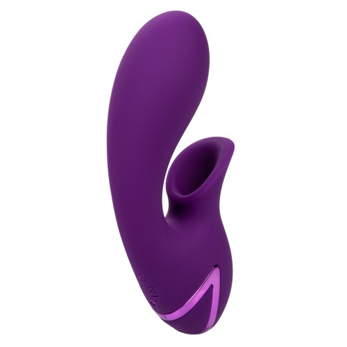 The playful California Dreaming Collection brings travel-ready fantasies to life with the hot Huntington Beach Heartbreaker. The uniquely designed massager is ready to relive your favorite summer fling fantasies with 10 powerful functions of clitoral suction and 3 knee-shaking vibration speeds.