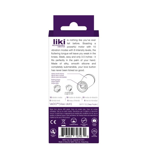 liki is nothing like you've ever felt before. Boasting a powerful motor with 10 vibration modes and 6 intensity levels, the fluttering tongue will leave you weak in the knees. Sleek, sexy and only 3.5 inches - it fits perfectly in the palm of your hand. Made of silky, smooth silicone and completely submersible, your love button has never been licked this good.