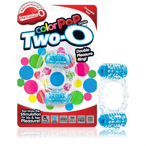 The Two-O Double Pleasure Ring features two super-powered super bright mini motors attached to a stretchy and comfortable pleasure ring for better more satisfying sex. The top motor stimulates her clitoris while the bottom motor buzzes strong for mutual pleasure giving couples something to scream about together! Now available as a convenient ColorPoP Quickie couples can enjoy vibrant vibration at home or on the go with a disposable design they can take anywhere.