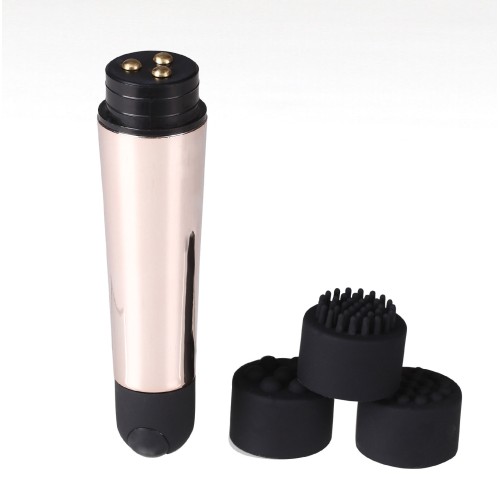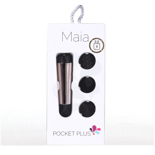 Maia Novelties has taken the classic pocket rocket and made it rechargeable with the Pocket Plus. The petite 10-function pocket massager improves upon a classic design with power and versatility. The Pocket Plus is fully rechargeable and features 3 interchangeable tips, for varying degrees of pleasure. The Pocket Plus is made from ABS Plastic and the Rose Gold coating is body safe. Fully waterproof and comes with a USB charging cable.