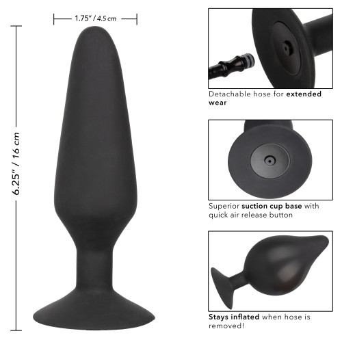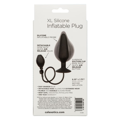 The CalExotics XL Silicone Inflatable Plug is a one-of-a-kind anal probe with inflatable body, easy squeeze bulb and detachable hose. The wickedly thrilling probe even stays inflated when the hose is detached! To inflate your ecstasy, simply attach the hose and press the easy squeeze bulb. Once youve reached the desired size, the probe will hold its size even when the hose is removed and the quick air release button allows for gentle deflation and removal.