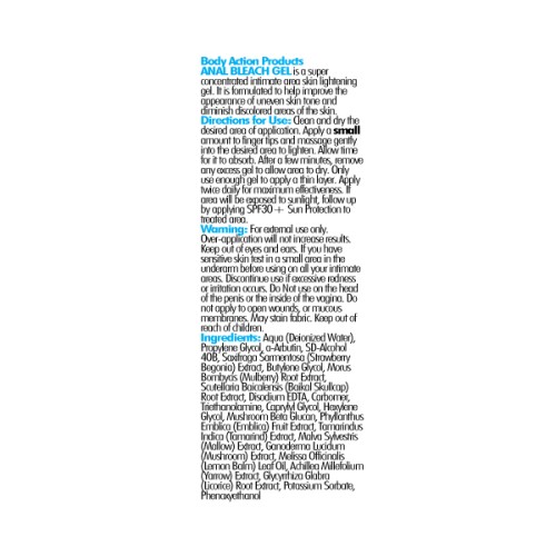 Anal Bleach Gel is a super concentrated intimate area skin lightening gel. It is formulated to help improve the appearance of uneven skin tone and diminish discolored areas of the skin. Ideal for Anal Vaginal Penis Scrotum Nipples Dark Underarms and all other intimate area skin lightening needs.