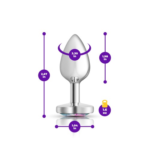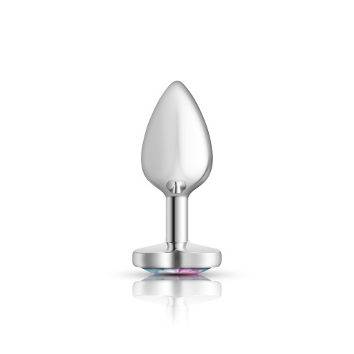 Clear Iridescent Heart Gem Silver Metal Plug - Sm