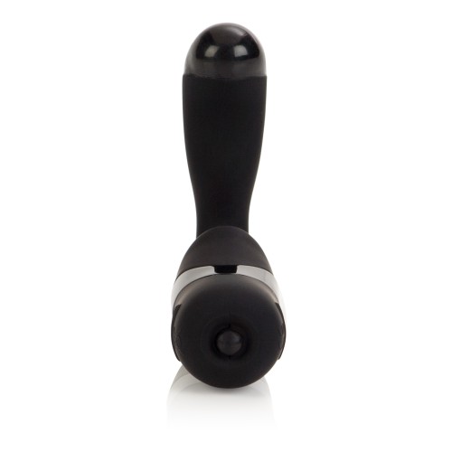 Vibrating prostate probe is angled and shaped for the ultimate contact. Compact travel size. Smooth easy glide finish. Powerful vibrations resonate throughout. EZ push button control.
