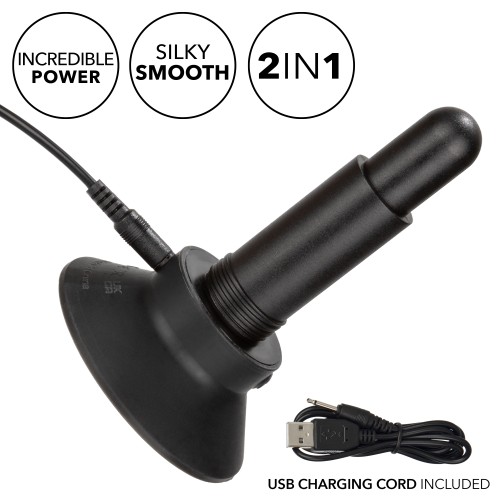 The two interchangeable anal probes have a gently tapered design created to flex with your movements and deliver intense stimulation. The base is sure to shake you to your core with a powerful vibration motor and extra-playful suction cup base design.