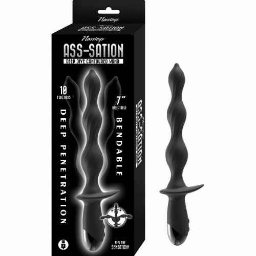 Ready to take your backdoor play to exciting new depths? Meet the Nasstoys Ass-Sation Deep Dive Contoured Wand, your flexible, powerful partner for deeper exploration. Designed with a longer, beaded shape thats easy to insert and incredibly satisfying, this wand bends and flexes with your body for maximum comfort and control. Featuring 10 intense vibration functions and made from body-safe silicone, the Ass-Sation is USB rechargeable, splash-proof, and surprisingly quiet, making it perfect for adventurous solo sessions or playful partner fun. To get the most out of your Deep Dive experience, charge the wand fully before first use to prime the battery, and always reach for a water-based lube to enhance comfort and glide. After play, simply clean with toy cleaner or mild antibacterial soap to keep it fresh and ready for next time. Whether youre just starting to explore or youre a seasoned sensation-seeker, the Ass-Sation Deep Dive Contoured Wand is designed to deliver thrilling, body-hugging pleasure every time you dive in.