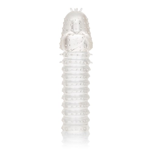 While you thrill your lover with increased girth and stimulating ticklers, the fulfilling enhancers powerful erection support and textured chamber result in explosive results for both of you. The textured chamber and erection enhancer provide increase stimulation and powerful support. Wrap your pleasure tool in this super stretchy sleeve to easily increase stamina, stimulation and orgasmic pleasure.