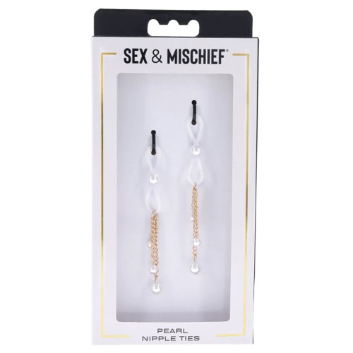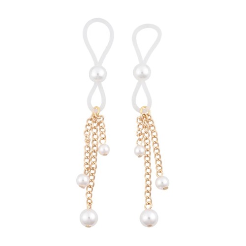 Indulge in the refined allure of our Pearl Nipple Ties - a captivating accessory that adds a touch of sophistication to any naughty occasion. With the pearls suspended by clear ties, they appear to effortlessly float on the body, creating a mesmerizing and ethereal effect. Let the Pearl Nipple Ties adorn your body like precious jewels and easily adjust the ties to add pressure and a touch of luxury and allure to your most cherished moments.