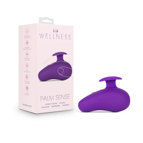 The Wellness Palm Sense Vibe turns your hand into a strong, 10 function massager using the powerful Rumble Tech motor. The finger fin slips easily between your fingers for a firm grasp and accessibility during use. Press the smooth, cushy silicone vibe body against your most sensitive zones for powerful massaging using the two powerful motors and dual massaging points. The Palm Sense is easy to hold and perfect for solo or partner assistance! Palm Sense is USB rechargeable, plus IPX7 waterproof for easy cleaning and use in the bath or shower. UltraSilk smooth and made of Puria silicone, this toy is silky, body-safe and phthalate free. As with all products and/or materials at Blush it has been 3rd party lab tested to meet or exceed REACH and Prop65 safety compliance directives. It's your body. Be mindful of what you put in it.
