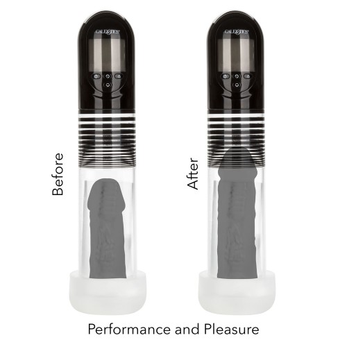 Maximize your pleasure tool with the Optimum Series Advanced Automatic Smart Pump, a sleek, durable penis pump made for superior suction and performance enhancement. Increase endurance, improve stamina and amplify your rod with this plethora of customizable exercise modes. Use the easy-touch buttons and LED screen to enjoy manual pumping or set pressure and duration for up to a 20-minute workout.