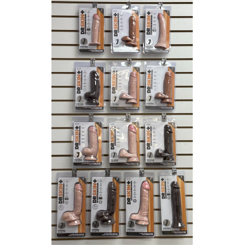 (2 pcs) BL-16996 Dr. Skin Plus - 7" Girthy Posable Dildo W/Balls Chocolate