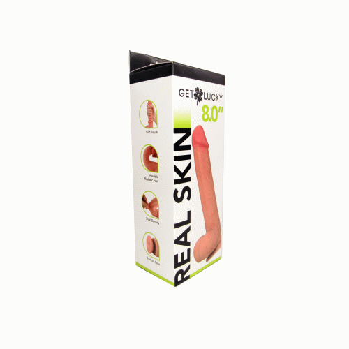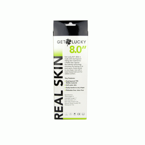 Get Lucky 8" dildo is made with dual-layered sliding-skin material for a life-like feel. Special dual density technology stimulates the feeling of an erect penis. Easily bends to any shape.