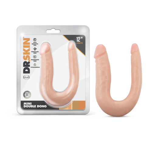 The doctor will see you now! The Dr. Skin Mini Double Dong is open for practice, ready to aid you in exploring creative possibilities. This soft, U-shaped toy flexes and curves, making it ideal for double penetration or for comfortable use between partners. Grip its U-shape curve and move both heads for blended pleasure! Featuring 2 different-sized ends for comfort: slim on one side, and average girth on the other. Made of lab-tested non-porous PVC, Dr. Skin toys are body safe, phthalate-free, and easy to clean.