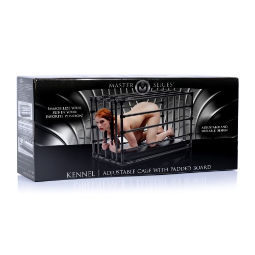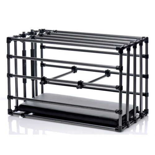 Immobilize your sub in your favorite position! The kennel is an adjustable cage with a padded board and optional positioning bars. Lock up your plaything within the coated metal enclosure and get creative! Trap their head between the front entrance bars with silicone padding so that they are perfectly positioned for force feeding. Leave in the comfortably padded leather-like board for extended role play sessions or remove it to punish a naughty pet. Positioning bars allow you to prop up their booty, feet, or chin, but you can also use them to keep their head, shoulders, and waist pushed down. Achieve the exact look that gets your blood pumping hardest! Attach their restraints, not included, to keep them in their place. This versatile cage makes an excellent addition to your dungeon or bedroom, creating a striking image as soon as your partner lays eyes on it. Assembly instructions are included.