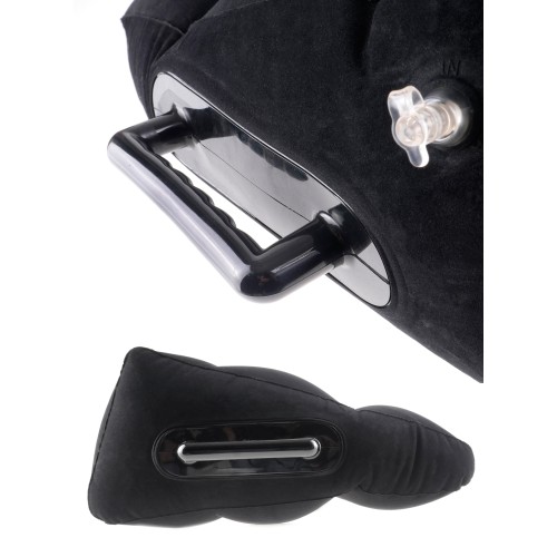 Indulge in your wildest fantasies with this Inflatable Position Master. The slanted, flocked design allows you to relax in any position without sliding off, while the EZ-Grip love handles are perfect for maintaining difficult positions without losing your rhythm. The air seal valve makes inflating the wedge a snap, and when the fun is over, simply deflate the Position Master and it's ready to go where you go. It's perfect for those romantic getaways and no one will know whats in your bag! Do it all with greater ease... no matter what position you're in! And lubricant doesn't even show up on the surface making it easy to clean too!