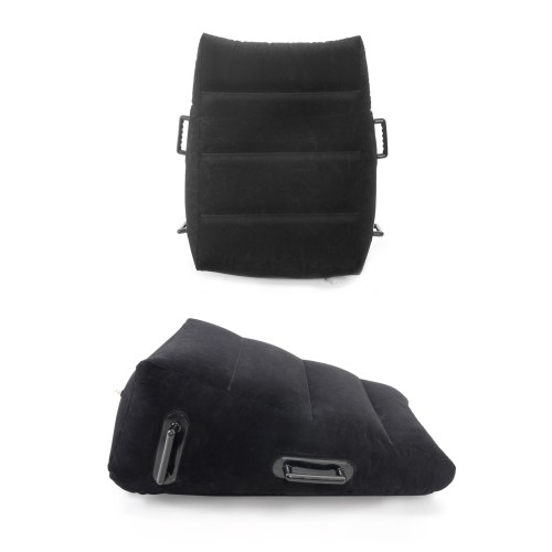 Indulge in your wildest fantasies with this Inflatable Position Master. The slanted, flocked design allows you to relax in any position without sliding off, while the EZ-Grip love handles are perfect for maintaining difficult positions without losing your rhythm. The air seal valve makes inflating the wedge a snap, and when the fun is over, simply deflate the Position Master and it's ready to go where you go. It's perfect for those romantic getaways and no one will know what's in your bag! Do it all with greater ease... no matter what position you're in! And lubricant doesn't even show up on the surface, making it easy to clean too!