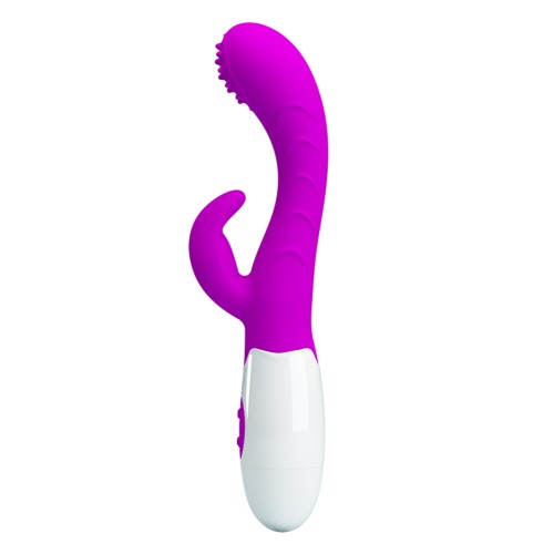 This smooth silicone rotating vibrator has 3 waving functions and 7 vibrating functions to give you an intense level of pleasure whenever desired. This vibe will tickle your clitoris with its intense powerful ears. The curved shaft of the vibrator is designed to massage your G-spot with its unique rotating feature inside the shaft. The toy is made with a high quality, soft touch silicone that provides a sexy, silky feel to leave you fully satisfied all night long.