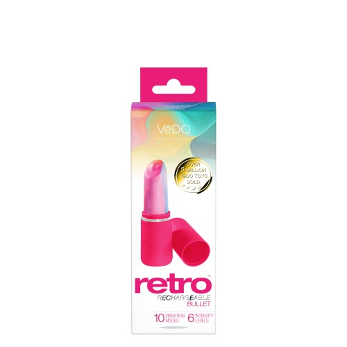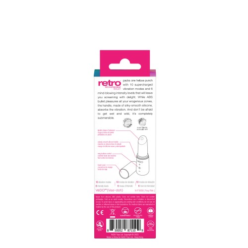 Retro Rechargeable Bullet packs one helluva punch with 10 supercharged vibration modes and 6 mind blowing intensity levels that will leave you screaming with delight. While the bullet point pleasures all your erogenous zones, the silky smooth silicone handle gives you maximum handling control. And don't be afraid to get wet and wild, it's completely submersible.