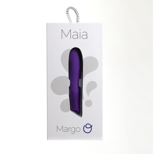 Small in size but big on power, the Maia Novelties Margo is your go anywhere toy. Use Margo as a straight vibrator or to replace your favorite bullet. Margo features 10 functions of vibration with a twisty tip for targeted stimulation. Margo is fully rechargeable and is easily controlled with base mounted push button. The Margo is covered in 100% body safe Silicone and is fully submersible for your poolside excursions.