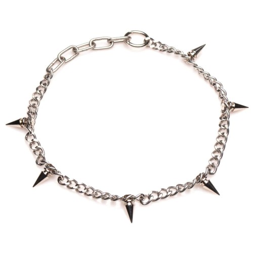 Exude punk energy with this edgy silver necklace! This nickel free stainless steel necklace features 6 conical spikes to add a little bite to your appearance. Perfect as a gift to lovers with a little spice in their personality, or to classic punksters with a penchant for BDSM fun.