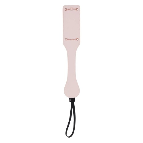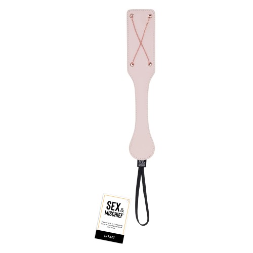 Choose your own pleasure. The Peaches N CreaMe Chain Paddle is crafted from soft, smooth faux leather with detailed saddle-stitching and sealed edges for lasting durability. One side features crisscrossed rose gold chains for bold texture, marking the skin with intent, because X always marks the spot. The other side offers a smoother chain-lined surface for a gentler touch. From a stinging tease to sharper correction, deliver every strike with purpose. A secure wrist loop ensures a steady grip, easy storage, and even easier surrender.