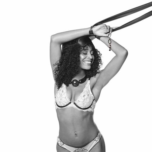 A soft blindfold and silky ties allow for a gentle introduction to BDSM