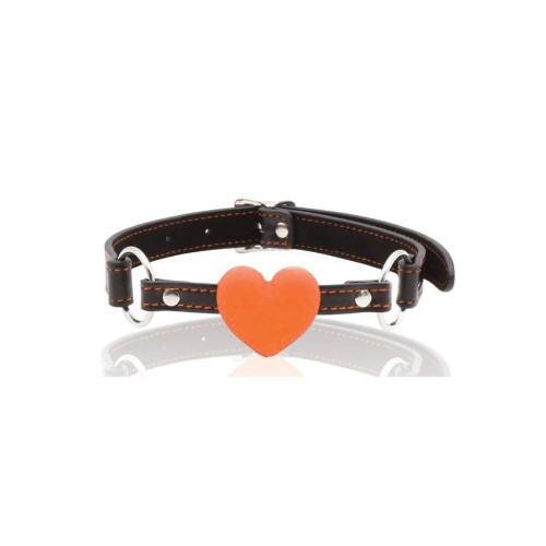 Put your heart in your bdsm foreplay with this super-cool new silicone mouth- gag. Made with waterproof leatherette and finished with proprietary orange stitching, adjustable metal buckles allow for a snug fit every time. Non-porous and phthalate-free, this beauty is truly love at first bite.