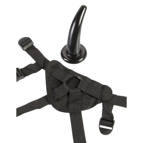 You teased him first with a tongue or finger and now he wants more. Give your boy-toy the satisfaction he craves with the Pegger Strap-on. This slim jelly dildo is perfectly sized for his first anal encounter. Its small enough not to intimidate but big enough to deliver big-time thrills. Plus its cleverly curved to reach his sweet spot with ease. The durable 4-way nylon straps easily adjusts to fit most sizes while the plush-lined harness comfortably stays in place when the action heats up.
