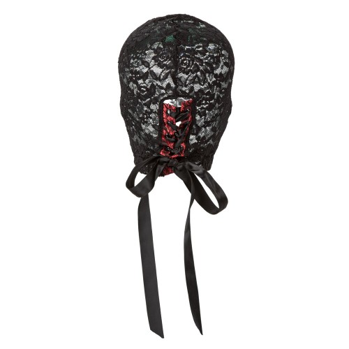Give yourself over to secret fantasies and ravishing role play with the Scandal Corset Lace Hood. The full-face lace hood was crafted to embody beauty and comfort with a corset-style lace up design and breathable lace mesh to allow you to surrender yourself to your lovers every whim. The luxuriously soft full head mask restricts sight and features to elevate arousal, heighten sensitivity and intensity overall desire for everyone involved. Feel yourself grow bolder when you wrap yourself into the lustful lace hood to give yourself over primal desires or take control of your lover.
