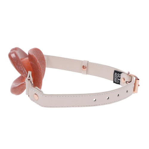 Say it without saying a word with the perfect blend of flirty fun and peachy play! Shaped like luscious lips in a tempting peach pearlescent hue, this silicone masterpiece is both inviting and seductive for oral play. The faux leather buckle ensures a secure fit while letting you are left speechless. Perfect for beginners or seasoned enthusiasts, the peaches n creame lips gag adds a playful twist to your intimate moments. Explore a new flavor of kinky play and leave your bottom silently begging for more.