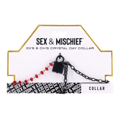 Designed to be worn anytime, anywhere, the Ex's and Oh's Crystal Day Collar is a statement of both style and connection. This elegant collar combines ruby red crystals with a matte black chain, creating a striking piece that balances beauty and boldness. Secured with a lock, it adds a touch of playful submissio while remaining discreet enough for the bedroom or as a stylish accessory outside. Whether you wear it to symbolize ownership or simply as a bold fashion statement, this versatile collar lets you carry your connection with you, wherever you go.