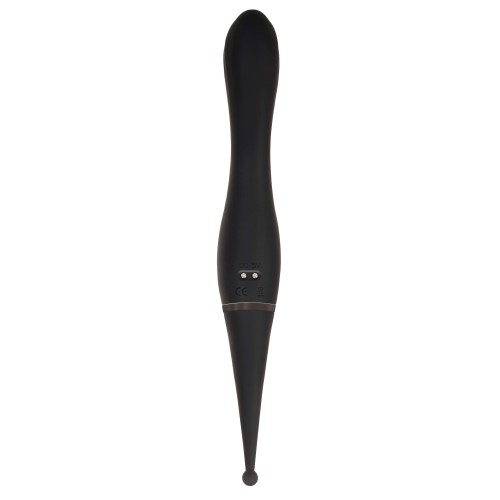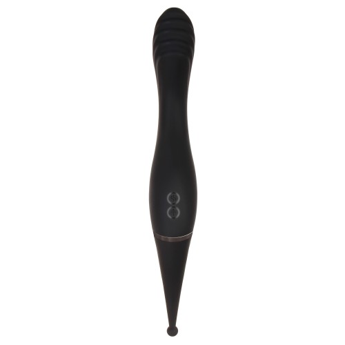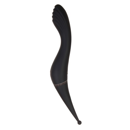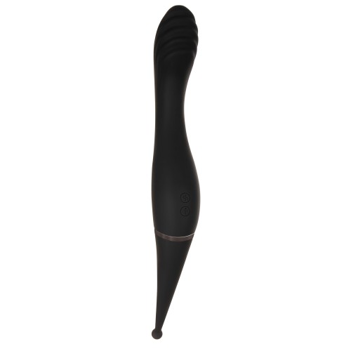 Double your pleasure with this dual-function vibe that delivers pin-point precision on one end and a textured G-spot experience on the other. Discover pure clitoral bliss with the deliciously round tip of the powerful tail and explore deep internal joy with the curved and flexible head thats designed with grooves to specifically tickle the G-spot. Each 10-speed motor operates separately with convenient controls at the midpoint, even under water as its completely submersible.