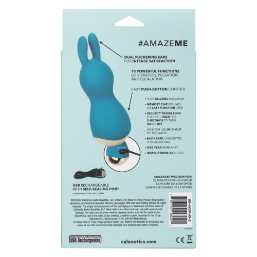 Slip the sensual Slay #AmazeMe into your purse or handbag for knee-shaking pleasure wherever you go. The unique mini rabbit massager fits between your fingers to let you deliver pinpoint tanalization while the flickering ears tickle and tease. Get playful while you flicker through 10 indulgent vibration, pulsation, and escalation functions with the easy-touch control button. Effortlessly control pure pleasure with an easy-touch silicone button and hold for 3 seconds to turn on or off.